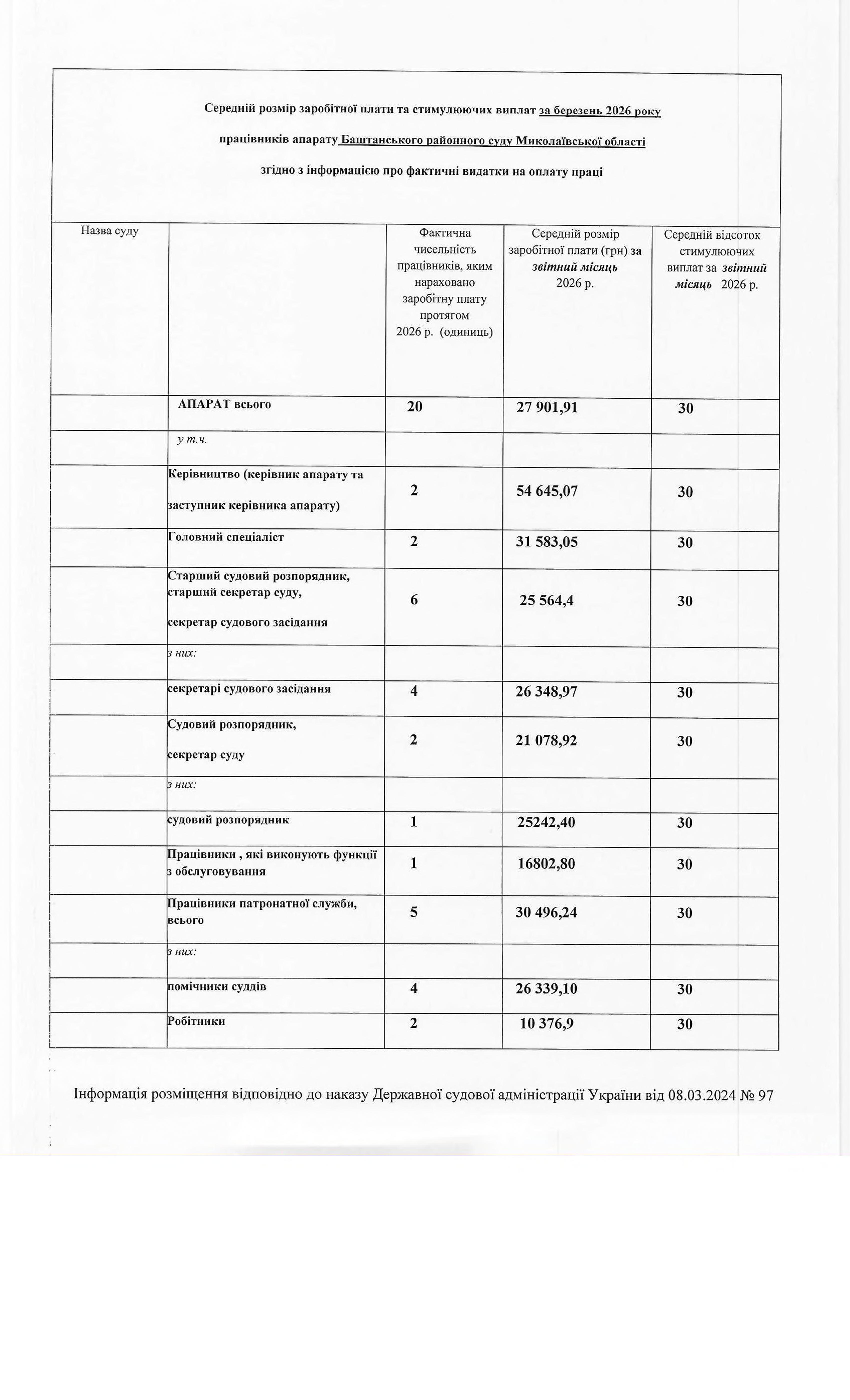 Середній розмір заробітної плати та стимулюючих виплат за березень 2024 року
